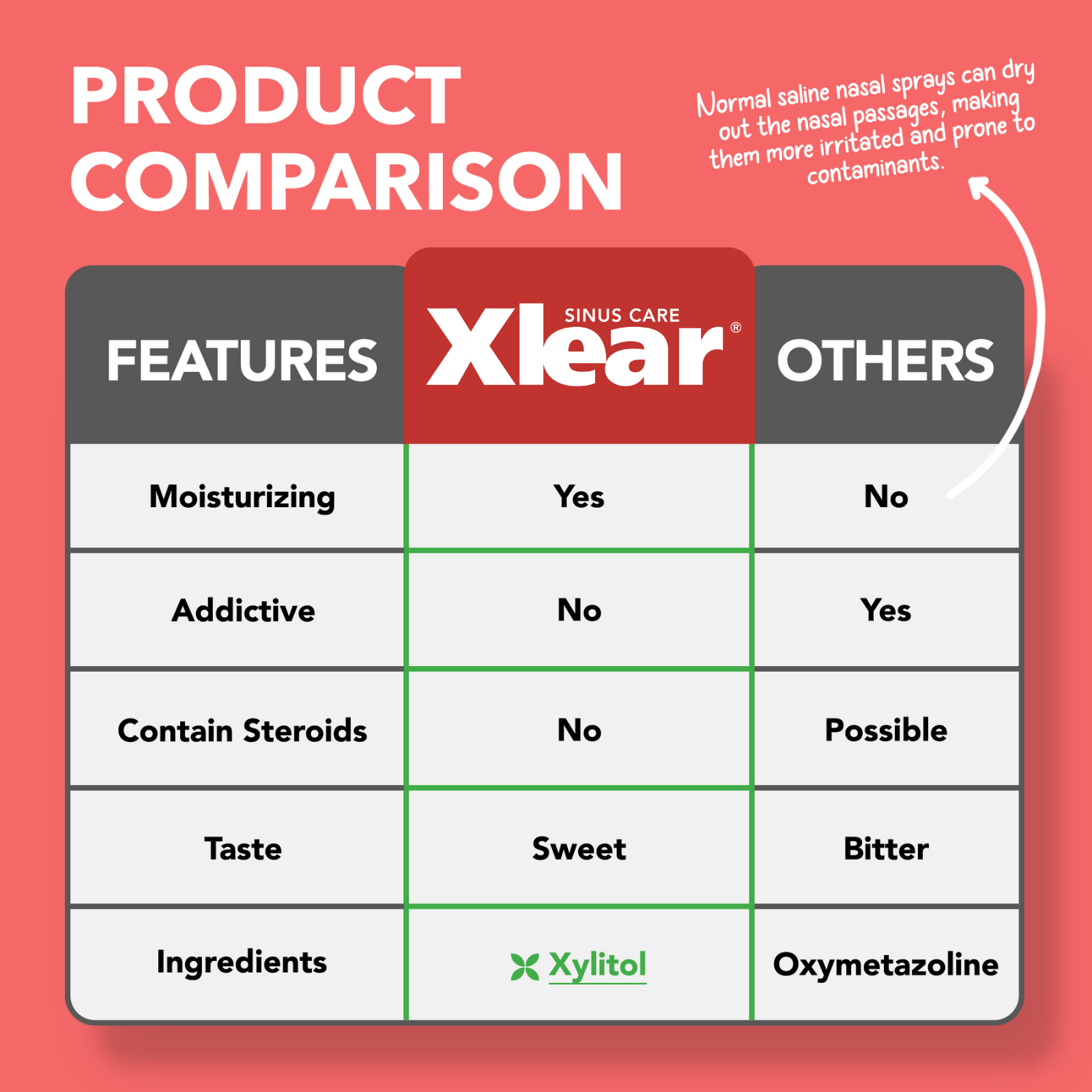 Use XLEAR MAX to alleviate congestion due to colds, flu, and allergies. For regular use, we recommend using XLEAR Saline Nasal Spray with Xylitol. Shake before each use.