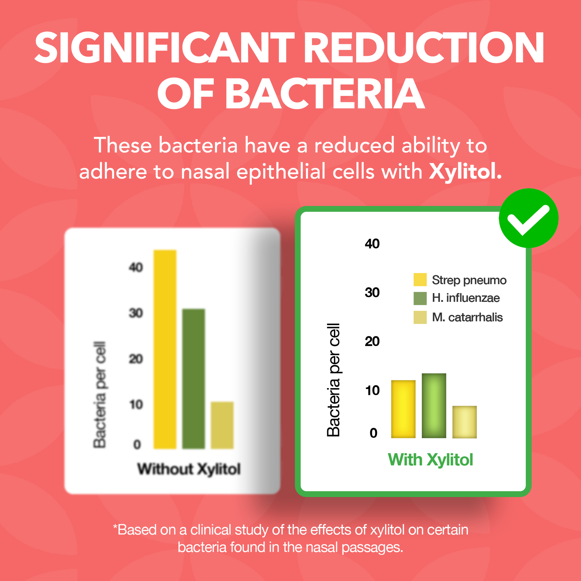 - The addition of xylitol safely makes the solution hypertonic, allowing it to reduce sinus tissue swelling without steroids. It also moisturizes and protects delicate sinus tissues.